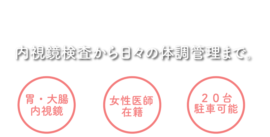 当院では消化器病専門医、消化器内視鏡専門医、胃腸科専門医が診療にあたり、経鼻対応の胃カメラや大腸カメラ、CTなどの検査機器を院内に備えることで、つらい症状の原因をできる限り早く、正確に突き止められる体制を整えています。
