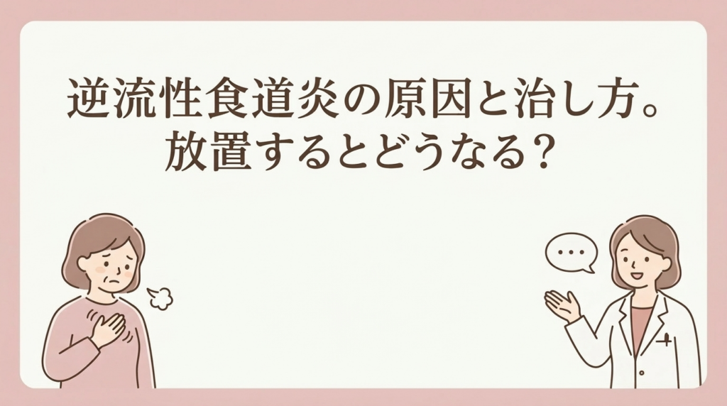食後に胸のあたりが熱くなる 酸っぱい液が喉まで上がってくる 横になると胸やけがひどくなる こうした症状に覚えのある方は、逆流性食道炎かもしれません。 逆流性食道炎は、胃酸が食道に逆流して粘膜に炎症を起こす病気です。日本人の10〜20%が経験する...
