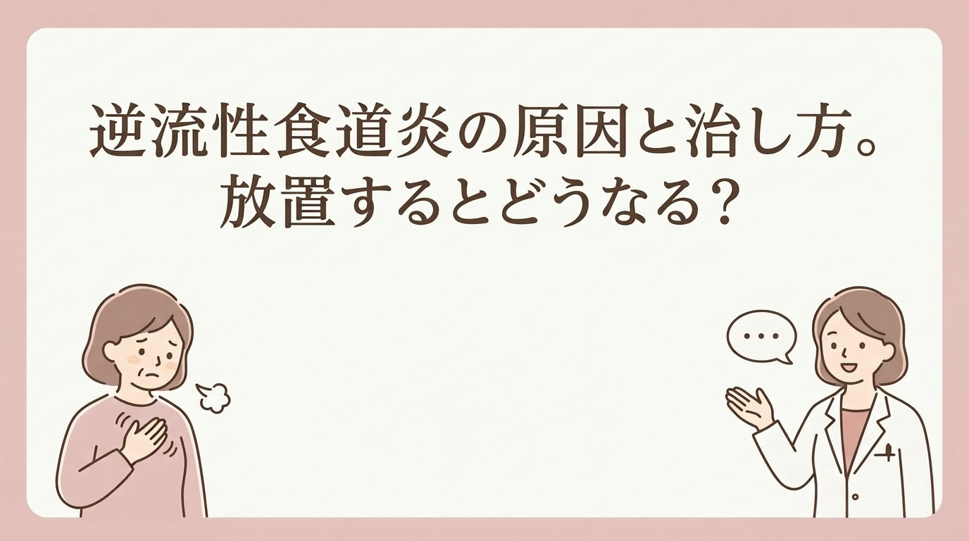 逆流性食道炎は、胃酸が食道に逆流して粘膜に炎症を起こす病気です。日本人の10〜20%が経験するともいわれるほど身近な疾患ですが、「胸やけくらい」と放置している方が少なくありません。
